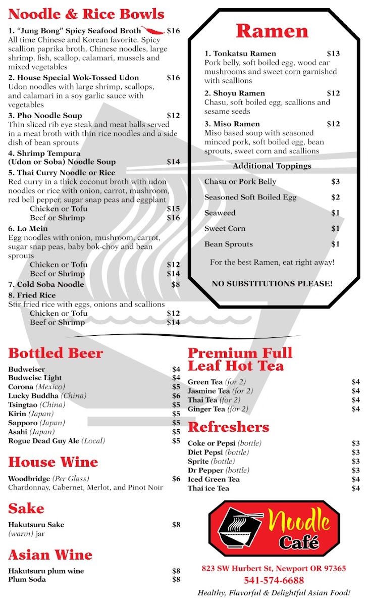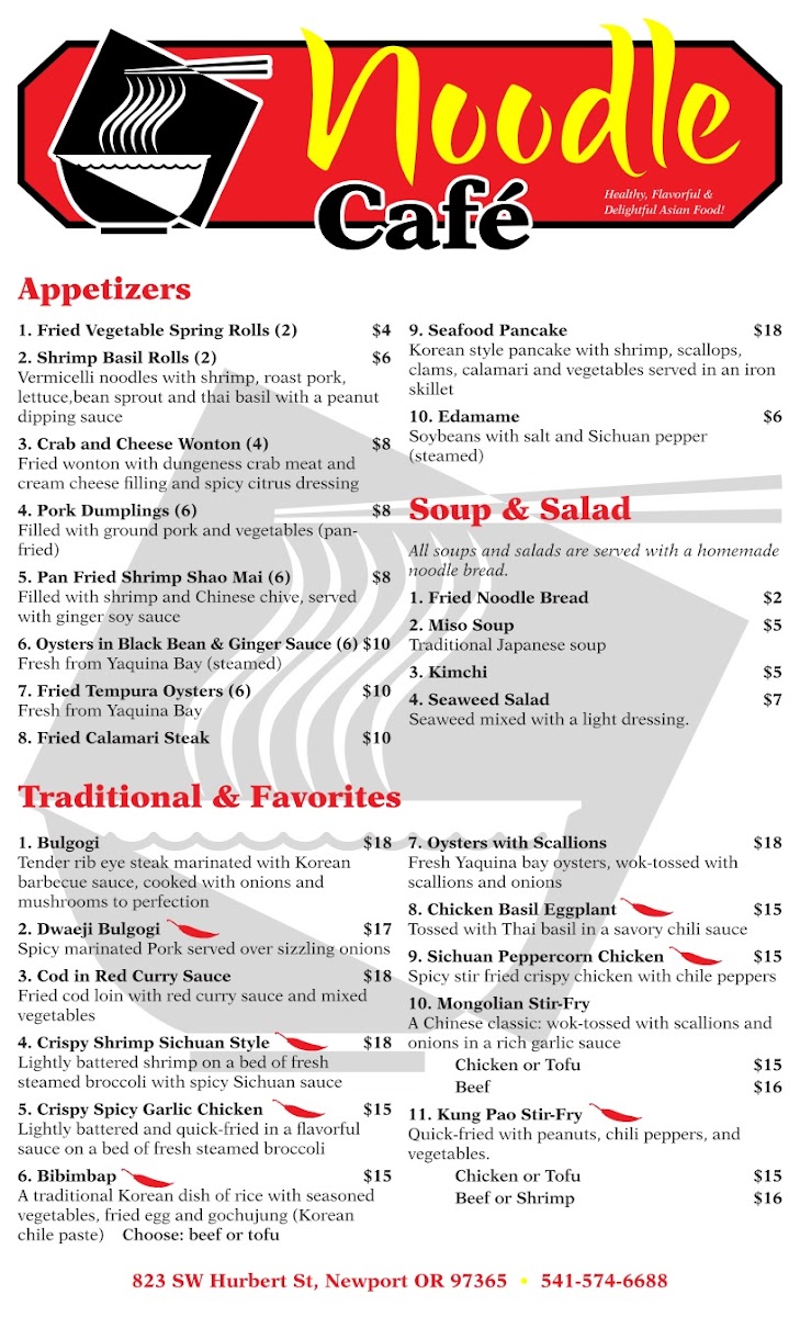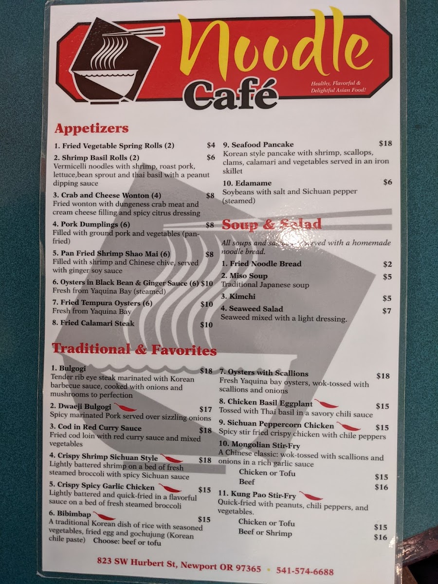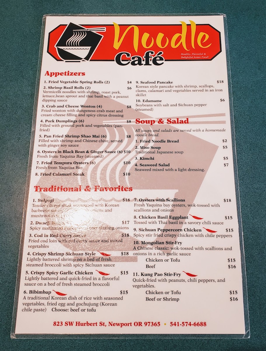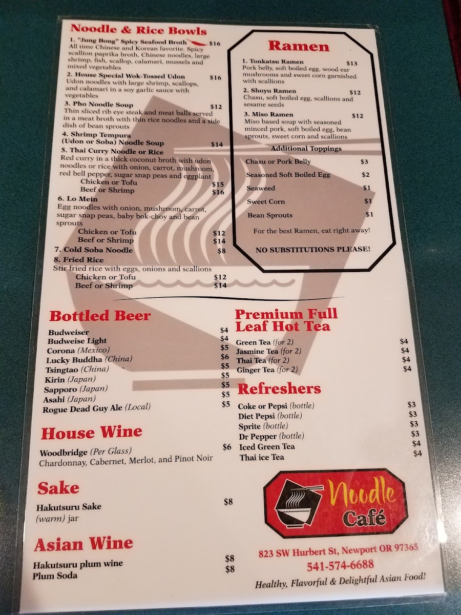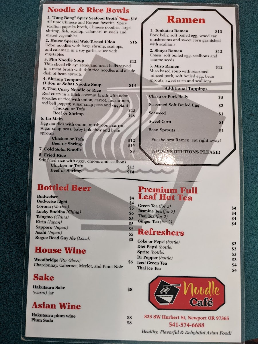 Welcome to Noodle Cafe in Newport, Oregon, where culinary tradition meets a vibrant atmosphere. Nestled at 823 SW Hurbert St, this charming eatery boasts an inviting menu that offers an array of delightful noodle dishes and other Asian-inspired delicacies.